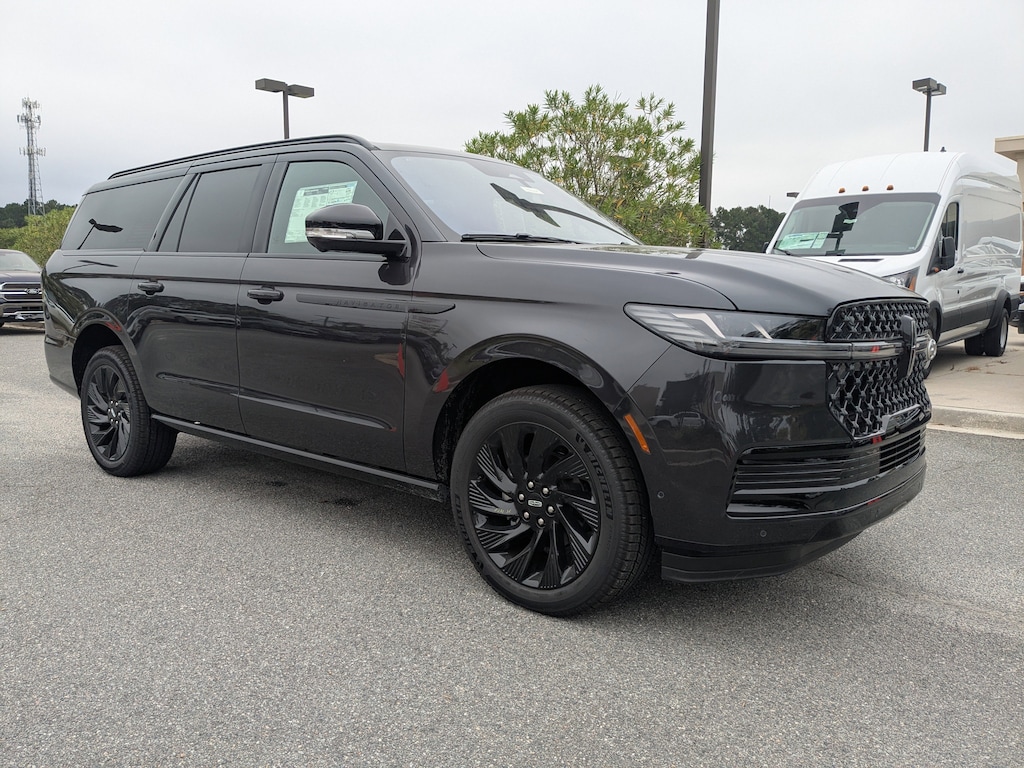 This 2025 Lincoln Navigator L Reserve is loaded with the following Factory Options:Equipment Group 202A Reserve II, Jet Appearance Package (Black Accent Badge, Black Accent Interior Pack, Black Beltline Molding, Black Painted Roof Rails, Front Bumper Fascia, Lincoln Lit Star, Unique Lincoln Grille Pillar Black Surround, and Wheels: 22" High-Gloss Ebony Aluminum), 28 Speakers, 3rd row seats: split-bench, 4-Wheel Disc Brakes, ABS brakes, Adaptive suspension, Adjustable pedals, Air Conditioning, All-Weather Flr Liners w/Fr & Rr Carpet Floor Mats, Alloy wheels, AM/FM radio: SiriusXM with 360L, Apple CarPlay/Android Auto, Audio memory, Auto High-beam Headlights, Auto Htd & Ventilated Premium Lthr Captain's Chair, Auto Start-Stop Technology, Auto tilt-away steering wheel, Auto-dimming door mirrors, Auto-dimming Rear-View mirror, Auto-leveling suspension, Automatic temperature control, Brake assist, Bumpers: body-color, Compass, Cruise Control, Delay-off headlights, Driver door bin, Driver vanity mirror, Driver's Seat Mounted Armrest, Dual front impact airbags, Dual front side impact airbags, Electronic Stability Control, Emergency communication system: 911 Assist, Exterior Parking Camera Rear, Four wheel independent suspension, Front anti-roll bar, Front Bucket Seats, Front dual zone A/C, Front License Plate Bracket, Front reading lights, Fully automatic headlights, Garage door transmitter, Heated front seats, Heated door mirrors, Heated rear seats, Heated steering wheel, HVAC memory, Illuminated entry, Leather steering wheel, Lincoln Connect, Lincoln Premium Connectivity, Low tire pressure warning, Memory seat, Navigation system: Connected Navigation (1-year trial), Occupant sensing airbag, Outside temperature display, Overhead airbag, Overhead console, Panic alarm, Passenger door bin, Passenger seat mounted armrest, Passenger vanity mirror, Pedal memory, Power adjustable front head restraints, Power adjustable rear head restraints, Power door mirrors, Power driver seat, Power moonroof, Power passenger seat, Power steering, Power windows, Radio data system, Radio: Revel Ultima 3D AM/FM/HD Audio System, Rain sensing wipers, Rear air conditioning, Rear anti-roll bar, Rear audio controls, Rear reading lights, Rear window defroster, Rear window wiper, Reclining 3rd row seat, Remote keyless entry, Security system, SiriusXM w/360L, Speed-sensing steering, Speed-Sensitive Wipers, Split folding rear seat, Spoiler, Steering wheel memory, Steering wheel mounted audio controls, Tachometer, Telescoping steering wheel, Tilt steering wheel, Traction control, Trip computer, Turn signal indicator mirrors, Variably intermittent wipers, Ventilated front seats, and Wheels: 22" Dark Tarnished Aluminum. Factory MSRP: $109,675